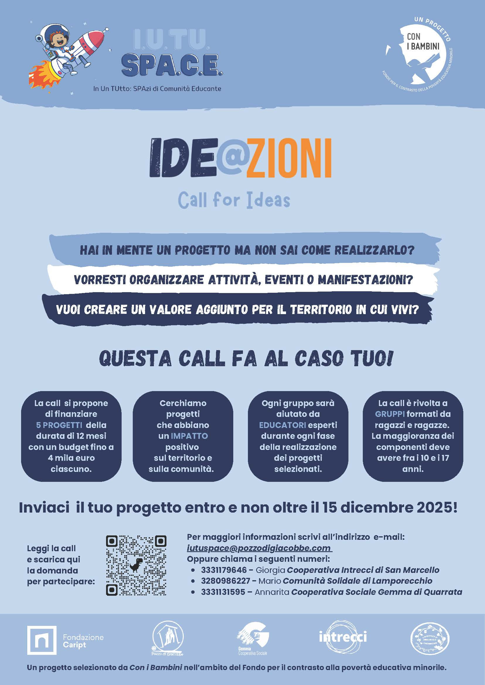 Sarà possibile presentare la domanda di partecipazione entro e non oltre il 15 Dicembre 2025 all’indirizzo e-mail iutuspace@pozzodigiacobbe.com.